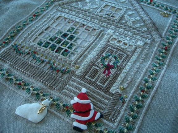 おなじみのパターンにサンタさんがよじのぼっていますよ。