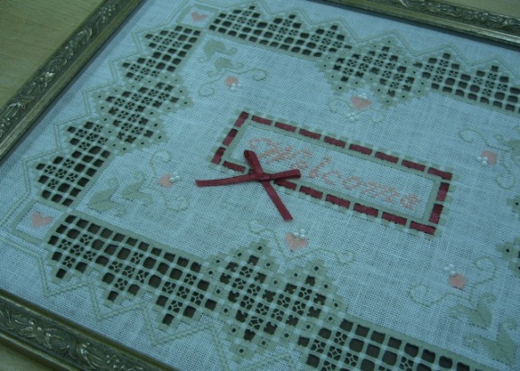 透けた後ろのマットの色とリボンと糸のバランスが素敵です。