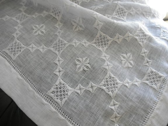 ガーゼの生地にアジュールを同じ力加減で淡々と刺していただきました。