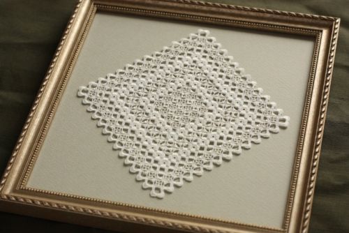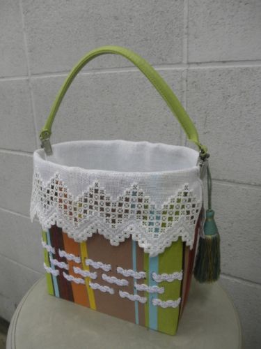 お得意のカルトナージュでバッグを作られそれに合わせてハーダンガーをレース状に。高度な楽しみ方です。