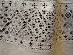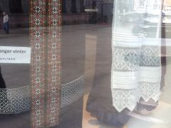 魚市場を見学の後手芸店を2件はしごしてその後素晴らしいホテルのレストランで 極上のサーモンを食してベルゲン鉄道にて海抜867mの高地 ミュールダールへ。 山岳鉄道フロム鉄道に乗り換えゆっくり急勾配を下りフロムに入りました。 ノルウェーの西の海岸からフィヨルドに沿って奥へ奥へ入ってきたことになります。 手芸店のショーウィンドウにはハルダンゲルの民族衣装が飾られ半製品の ブラウス等も売られていましたが何せ物価が高く手が出ません。 またキット等は目が荒い生地で参加の皆さんならすぐに刺せそうなものばかり。 |