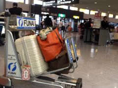 成田を出発する時にトランクに付けた刺繍のタグの写真を撮り
