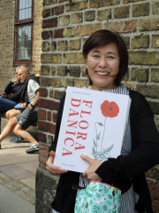 宮殿の螺旋階段にはボタニカルアートが・・・そして念願のご本を購入、ご満悦のIさん。
