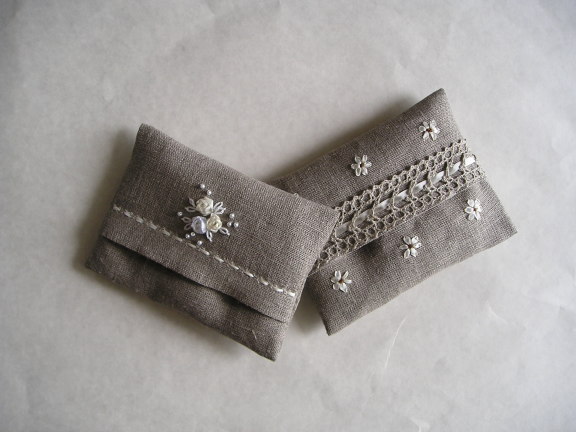 ![]() fogのナフキンを使用してリボン刺繍で 刺したポケットティッシュケース2種 |