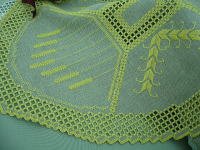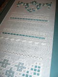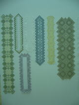 手前の濃淡の糸2色で刺した作品はヴォーグ社から既刊の竹内博子先生の