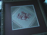 手前の濃淡の糸2色で刺した作品はヴォーグ社から既刊の竹内博子先生のご本の表紙の作品です。