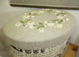 前回のスモッキングに続き今回はステンシル、リボン刺繍そしてカルトナージュを1回ずつ計3回行う講習内容。