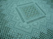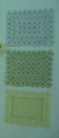 サテンステッチの糸の光沢、そしてカット後のかがりの種類でできる透け具合の違いが作品を豪華に見せます。