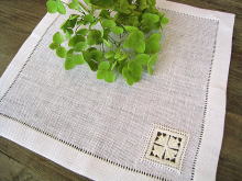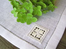 今私の教室で大人気のホワイトワークでヘムかがりとワンポイントにクローバーかがりを・・・