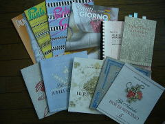 画像は最近購入した洋書の数々ですが全てアジュール、ドロンワーク、ラスキンレース等ハーダンガー以外の
