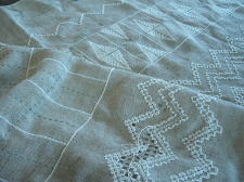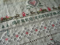 「先生、クロスステッチでツリーの模様を中央に並べて両脇はハーダンガーを組んでみたいの。。。。」