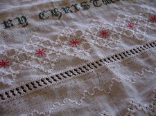 8月21日のレポートでお伝えした自宅教室Oさんのクリスマスの続編です。ハーダンガーのサテン部分が入りドロンワークが1本入り雪の結晶の模様が入りクロスステッチでメリークリスマスの文字が入りましたよ。