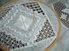 白の麻生地に白糸で・・・まだまだ全体をお見せするまでにはいきませんが美しいです。