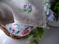 今回は抜きキャンバスを利用してナフキンにワンポイントのクロスステッチを・・ということで画像のサンプルができました。