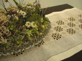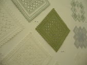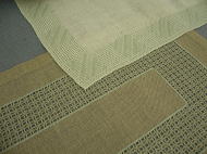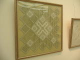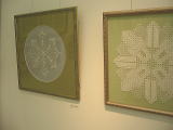 作品をマットの上に載せてハーダンガーのレース部分を透かせたり、窓を抜いて作品をはめ込んだり、