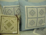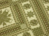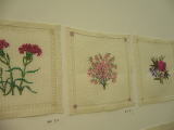 一番右の画像の作品は本で見つけた絵を元に生地の目数をカウントしながら図案を起こした苦労ものの作品です。