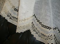 年明けから刺していた麻ガーゼのカフェカーテンが出来上がりました。
