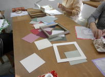 下に敷きこむマットの色、窓抜きのマットの色を皆さんブツブツと