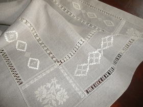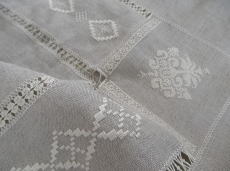 ドロンワークとクロスステッチが主体のセンタークロスです。