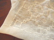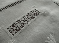 両サイドにまた抜き場を作りそしてその周りにきちんと美しくピコットの入ったドロンワーク。