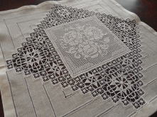 こちらはレティチェッロに加え中央にフィレレースの手法も加えそして周りには細いドロンワークの溝が4本。