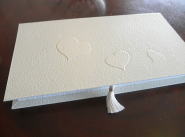 箱中の生地はこれまた優しい薄いグレーのストライプ。外はスキバルの白でハートの型押し。