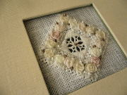 フランスのカルトナージュとクロスステッチがバランスよく刺された素敵な作品の