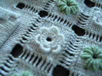 織り糸12本分の正方の穴を開けて抜いた糸を端で折り曲げて巻きかがり