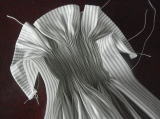 先ず水平に4本ストライプに合わせてぐし縫いを入れぎゅっと寄せてステッチを拾う山を作っていきます。