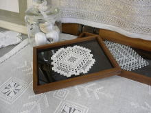 お作りになったドイリーをプレゼントしたいのだけど額より身近に使えて汚れないように・・ということでドイリーの大きさに合わせてペントレイにしましたよ。