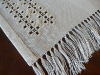 フリンジの長さを少し長くしたいなあと思い、結びをジグザグに2段入れてみています。