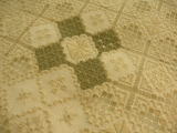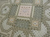 全て画像上から来たラインと横から来たラインの数合わせによって計算された模様行きの止まり位置が角になるわけですから4目ずつ施すしつけがとても重要なのがわかります。