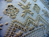 秋の号に掲載予定ですがそんなに難しくないステッチで刺し上げましたが、より初心者の方にわかりやすくハーダンガーをお伝えしたい・・と言うことで別に目の粗い生地でピンクッションを制作。