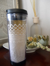 タンブラーの底の部分から刺繍した生地を輪にして広げながら入れることと手の届かない上部のところが隙間が細くなっていることがネックになって本来入れたい高さまで入れるのが不可能でした。