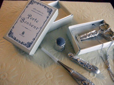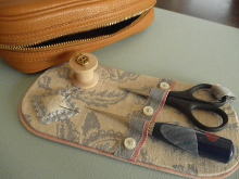 持っているだけで幸せになりそうな目打ち、針入れ、ピンクッション、 はさみ付シザーケースです。