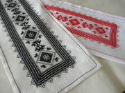 他のステッチとともにアレンジしそしてより民族調を意識して鮮やかな赤糸で刺してみました。