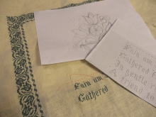 お気に入りの字体に載せて原文を書き写し、それをバランスを見ながら刺してみました。