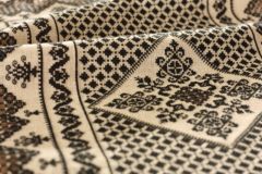 薄いベージュの麻布に黒糸で刺した作品です。 |