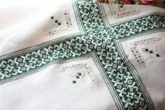 7月1日のReportでご紹介した自宅教室Kさんの作品が出来上がりました。 Kさんは次は大きなテーブルクロスをお宅のテーブルに合わせてお刺しになりたいというので |