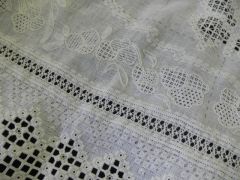 ドロンワークのナフキンですがこちらも幅も丈も生地や糸の色もカスタマイズでございます。