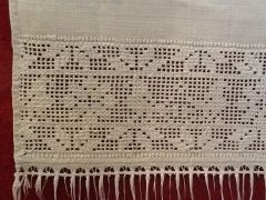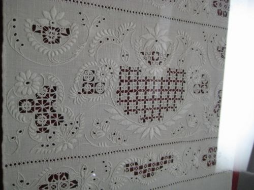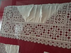 通常の展示物は空間もたっぷりとってガラスケースに並べられてありましたが クロスステッチ、ハーダンガー、レティチェッロ、フリーステッチ、カットワーク、フィレ、縁かがり、フリンジの展開・・・ |
