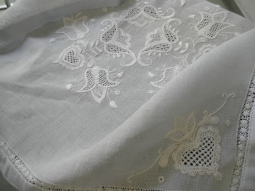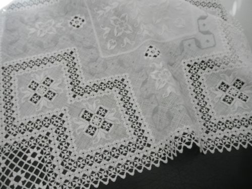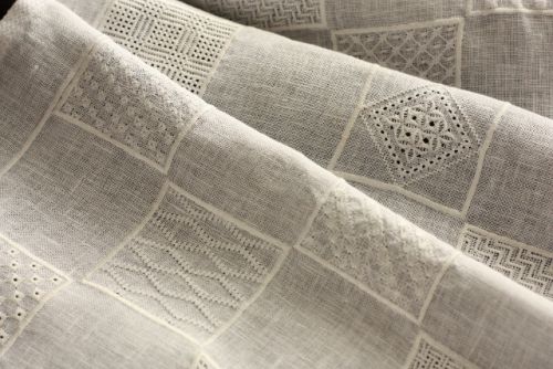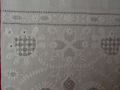 湘南台 Kさん 16目の生地にクロスステッチとバックステッチ、ドロンワークとハーダンガーを組み合わせて・・・