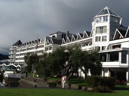 それより皆が喜んでいるのは美しい景色。 今夜のホテルはフロム鉄道の終点すぐ横ですが素晴らしい景色が広がり圧巻です。 |