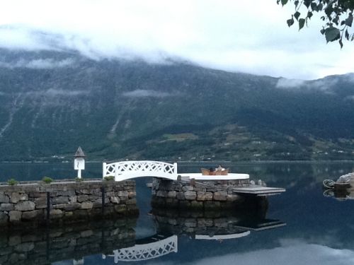 興奮して早起きをしてしまったので同室のHちゃんを誘いフィヨルド前のテラスで