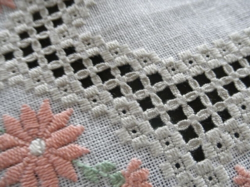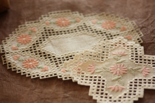 | 可愛らしいお花のモチーフがデザインされた小さなドイリーですが よ~く見てください。 |