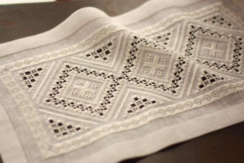 長津田教室のTさんが「ずうっと家に眠っている生地があるの。それにクロスステッチを入れようかしら・・