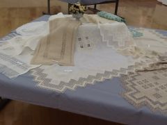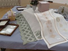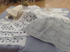 今年は小さなドイリーが少なく1F2Fのテーブルの上にも大作が並びました。