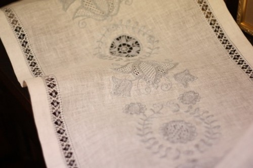 周りのドロンワークはそれぞれ違う手法で・・・豪華な作品です。