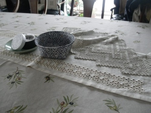 気分を一新と今日は朝からミシンを出してきて新しいテーブルクロスを縫い上げました。