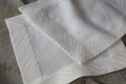 ご紹介した時はまだ無地のカットしただけの麻生地でしたが